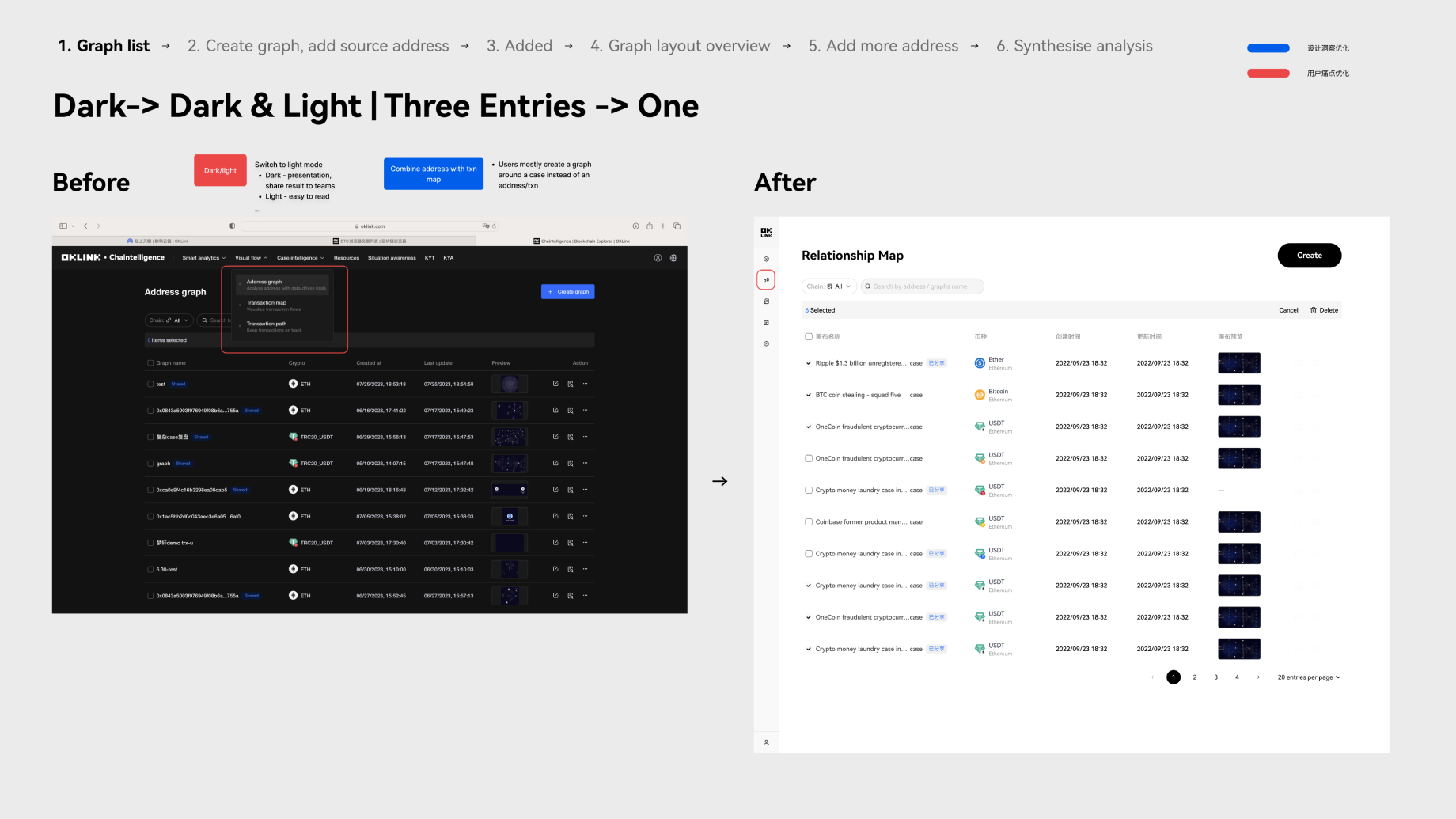 • Chaintelligence : A transaction visualization tool that helps compliance professionals and OTC owners identify crypto crimes and risks.