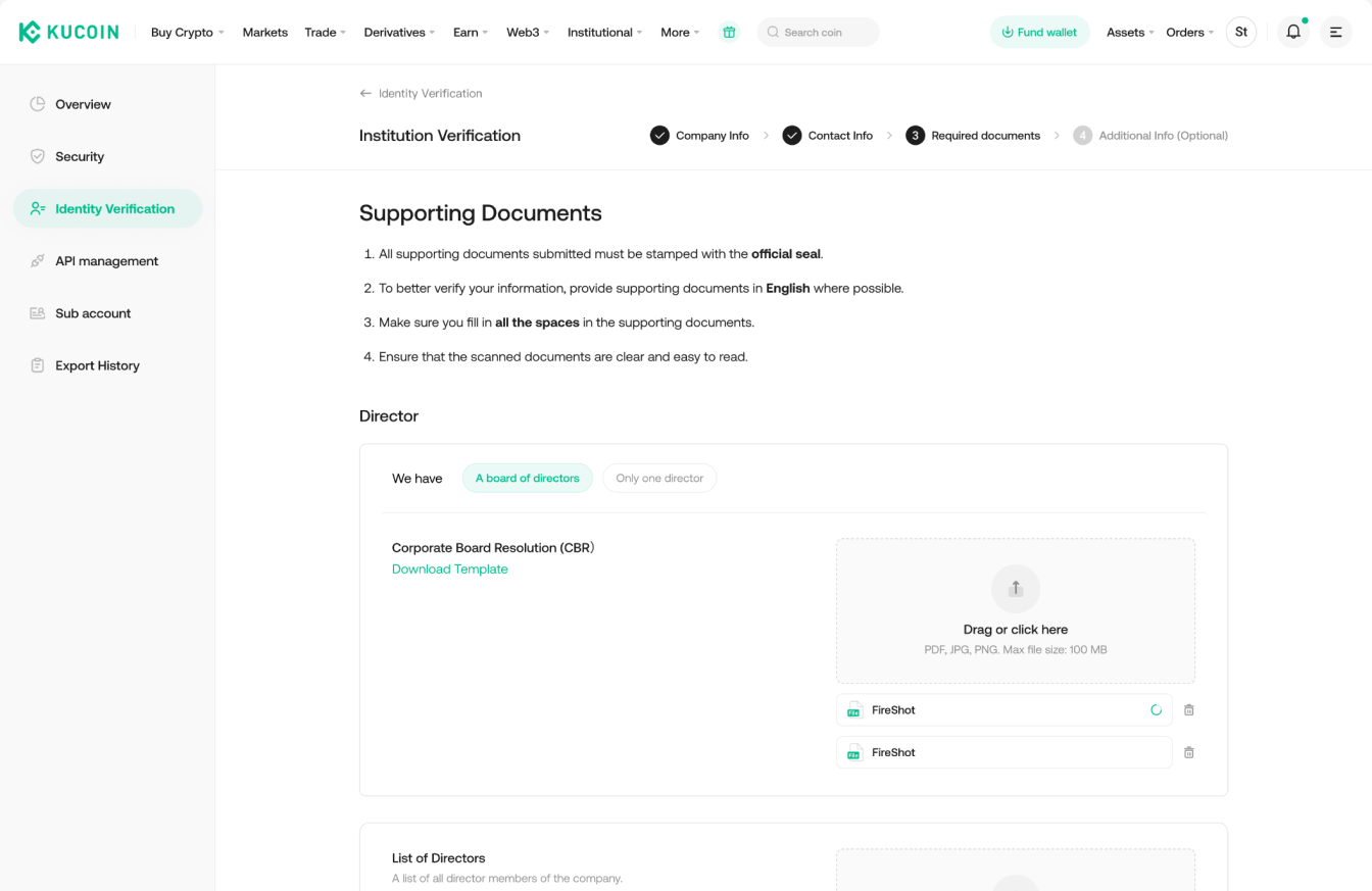· Institutional verification is crucial for organizations to prove their legitimacy. Once verified, they can access higher deposit limits and larger withdrawals, enhancing their trading capabilities.