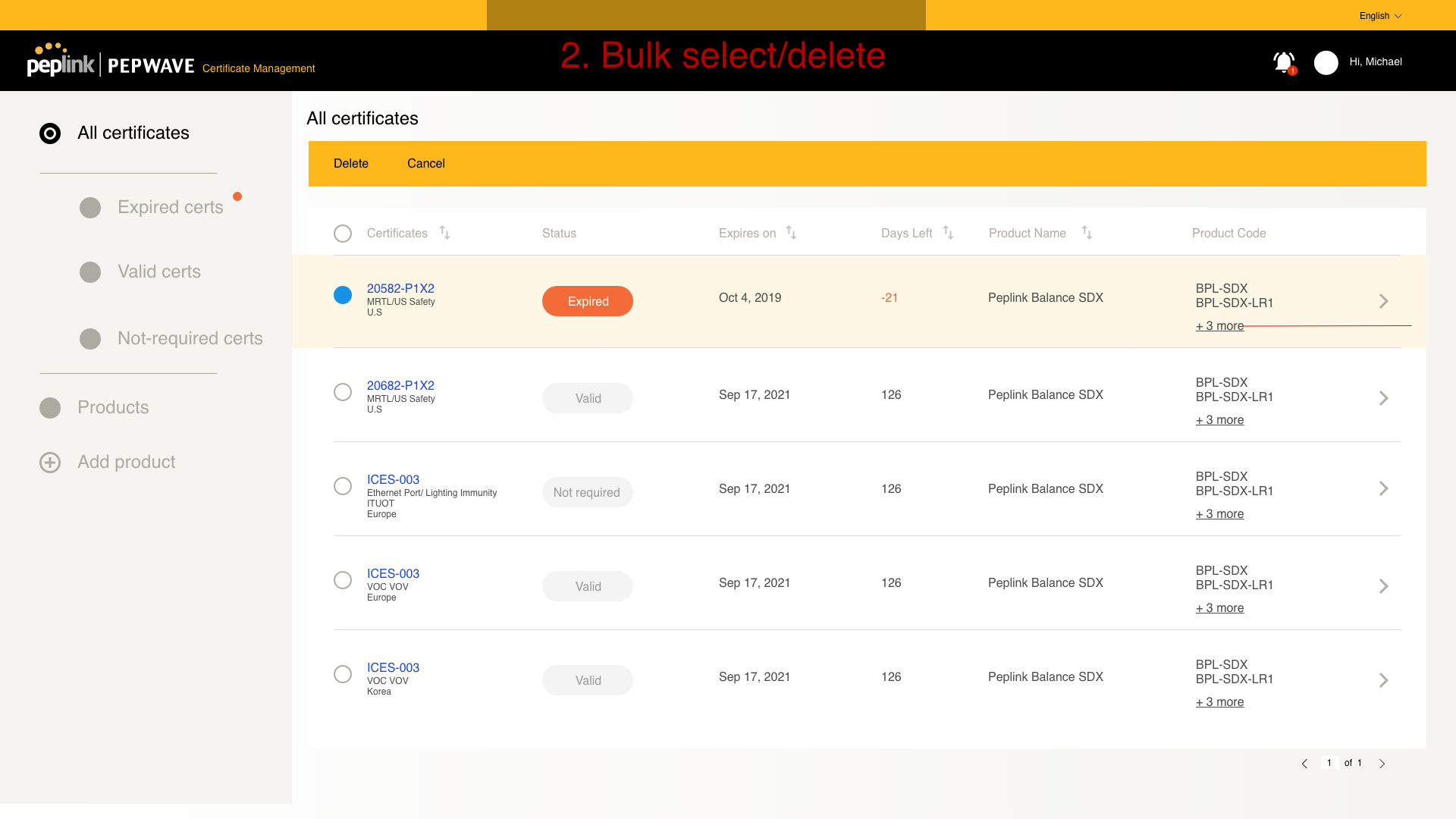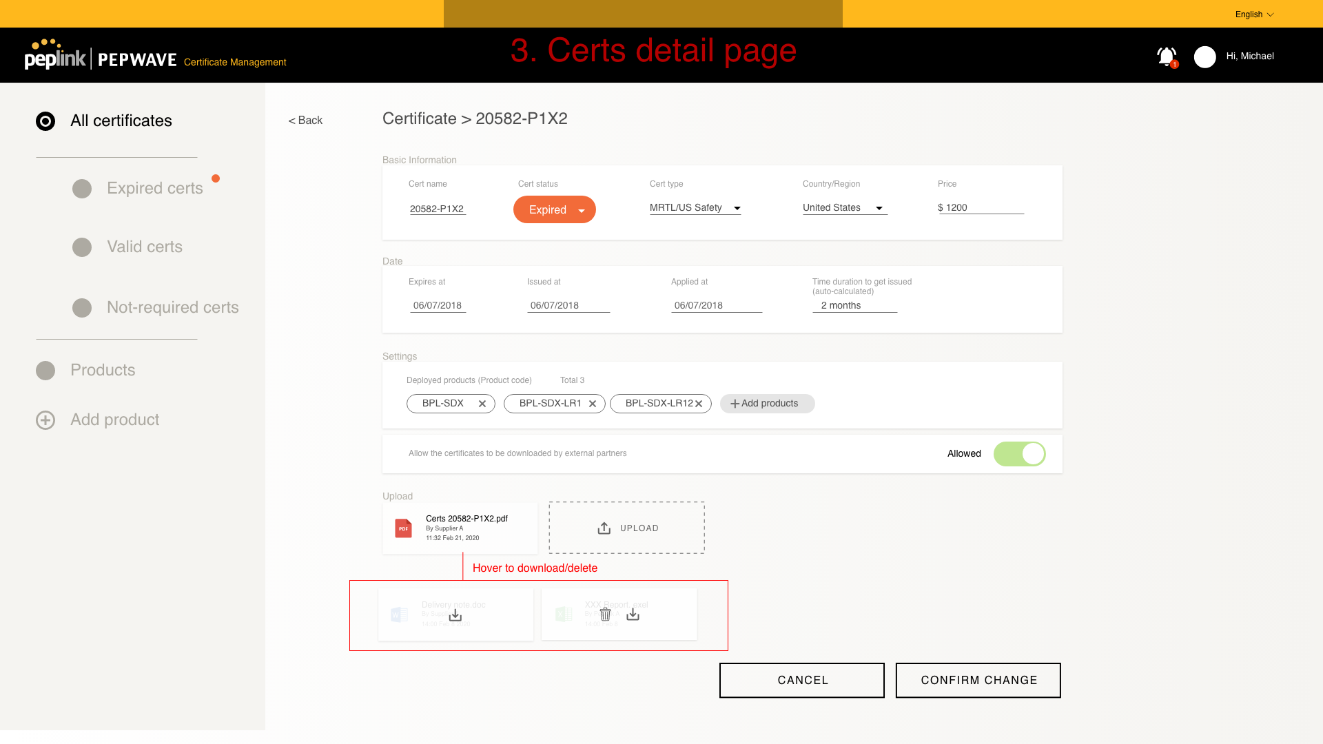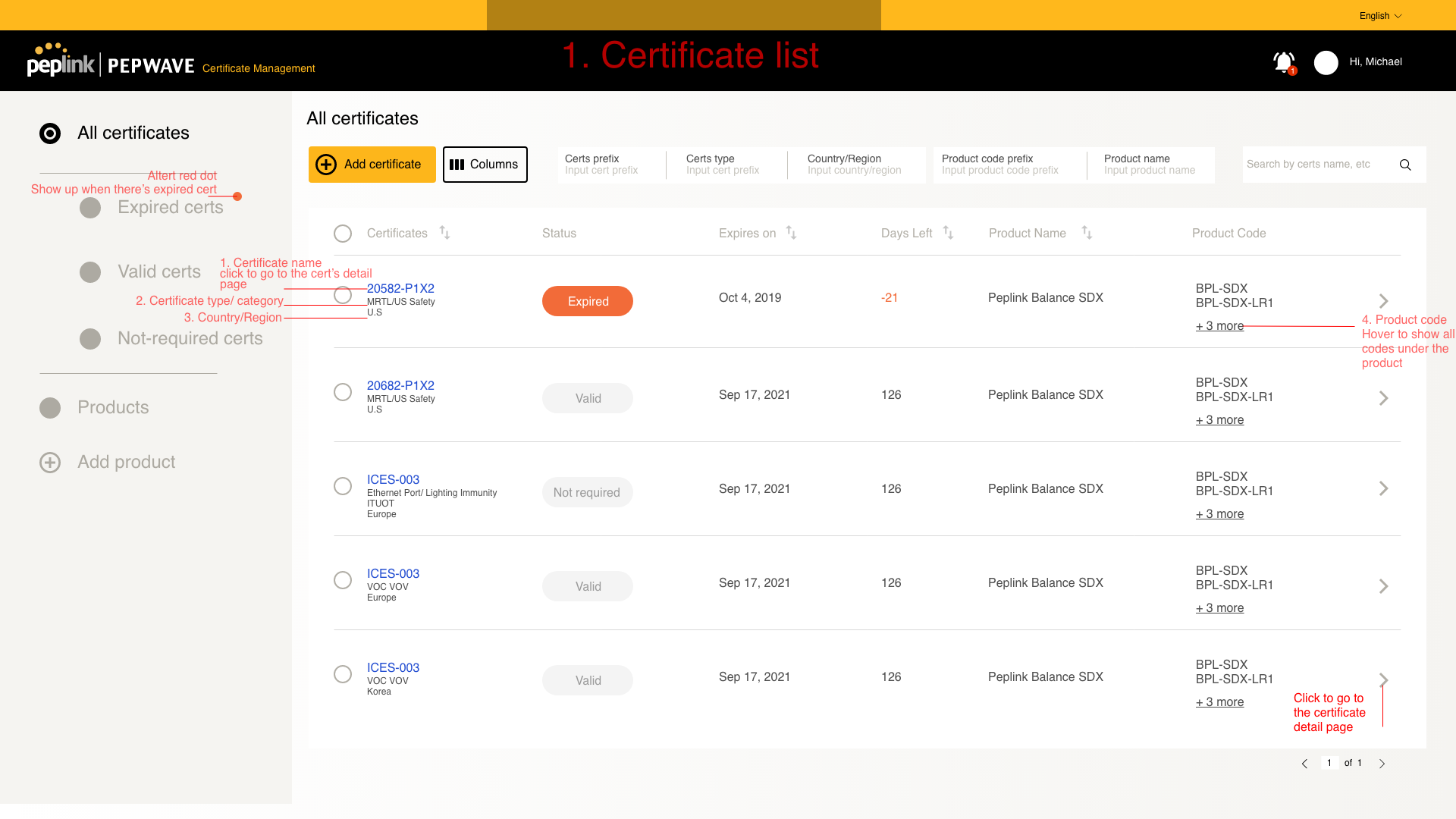 a platform for Peplink internal certificate team to manage their products' certificates via our platform so the certification team is able to manage all the product certificates more efficiently than using spreadsheets.